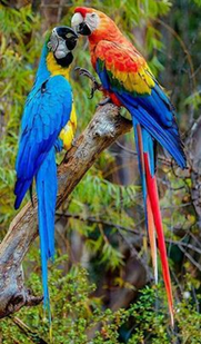 Primera imagen | Guacamayos: Ara ararauna (azul) Ara macao (roja) |